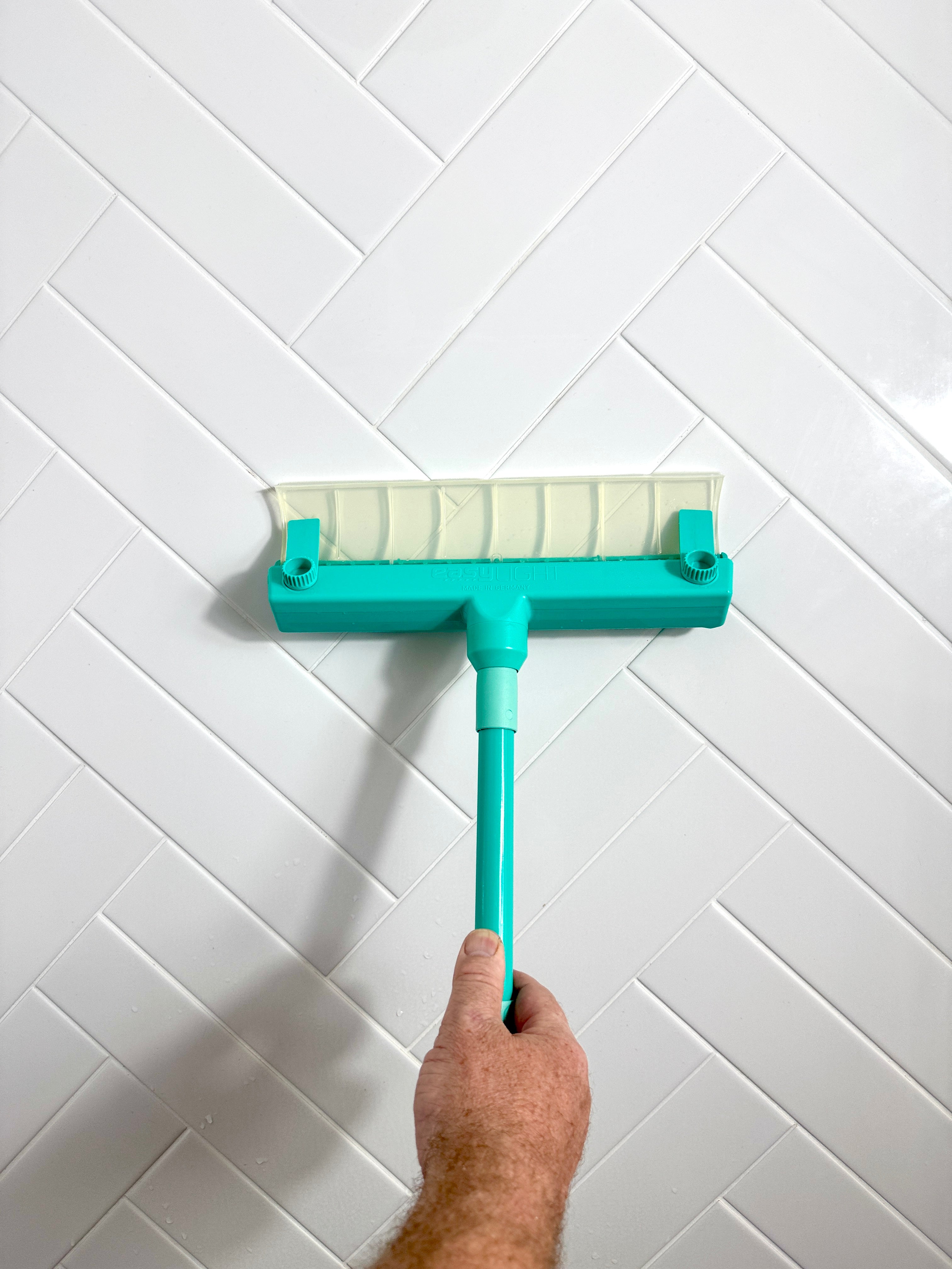 The highly flexible and reversible wiper blade easily cleans windows, mirrors, showers, tabletops, tiles, and even car glass.